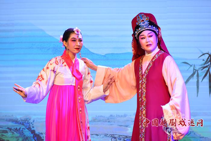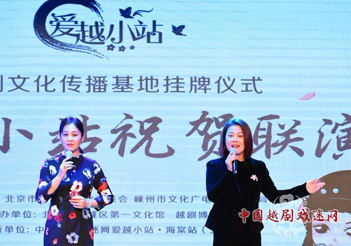 同日,嵊州市越剧团著名演员——梅花奖获得者黄美菊、国家一级演员裘巧芳与来自中国越剧戏迷网爱越小站海棠站(北京)、戚毕站(上海)、贵阳站、西安站、天津站和北京西城区第一文化馆越剧演员一起演出了精彩的越剧经典折子名段。