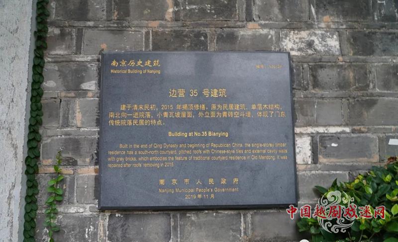作为南京历史建筑的边营35号,建于清末民初,2015年揭顶修缮。原为民居建筑,单层木结构,南北向一进院落,小青瓦坡屋面,外立面为青砖空斗墙,体现了门东传统院落民居的特点。南京越剧博物馆进驻后,对古宅进行了改造,精致的600多平方米小院,被设计成了展厅、小戏台、观众池等功能区域。