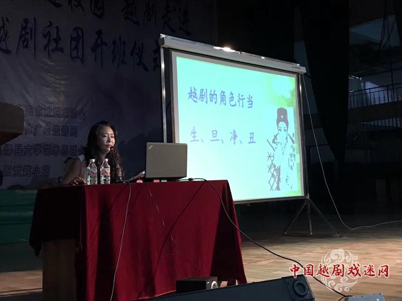 下午两点,在息烽文化馆内大剧场内,戏曲进校园活动隆重开始,贵阳市剧协息烽一中校长等领导都出席今天的活动,李珊站长上台接受聘书,市剧协领导为孩子们送上《红楼梦》越剧光牒。活动重头戏是由国家一级演员、中国越剧戏迷网爱越小站贵阳站站长李珊为息烽一中六七百个中学生,声情并茂地讲解越剧是什么,它的发源地和发展地,什么是戏曲的生旦净丑,同行演员积极配合,分别用手指水袖扇子在舞台上展示出来这种寓教于乐的形式,学生们听得津津有味,在轻松愉快中,学习很多越剧文化知识李老师的精彩讲解,赢得了几百师生的热烈掌声!
